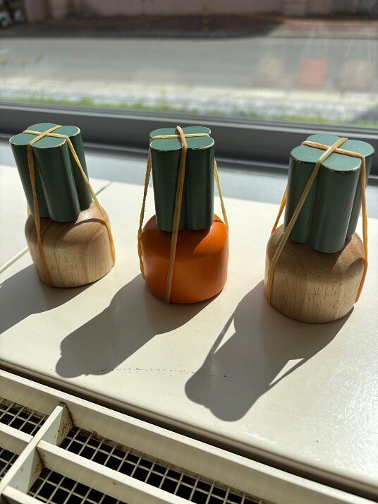 壊れていたプレイルームの野菜を修理して窓辺に並べてみました。