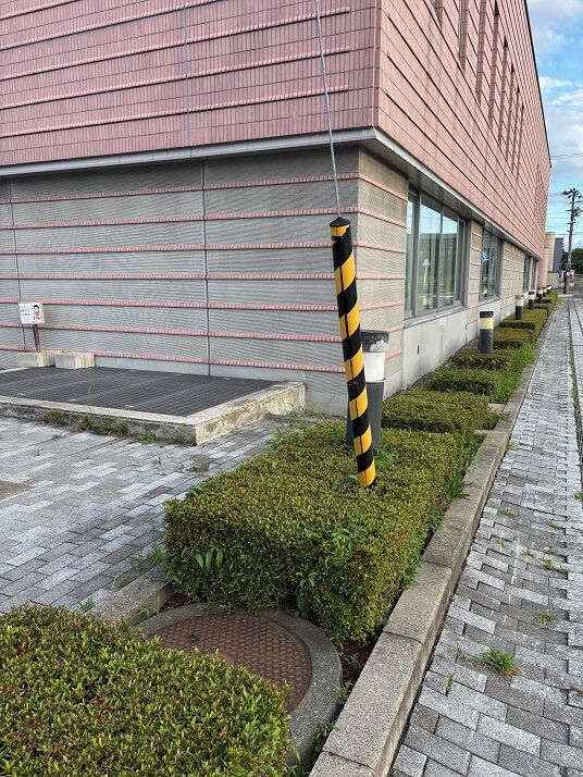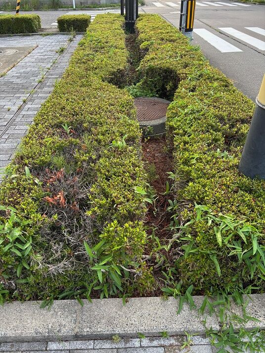 きれいに切りそろえたアピオあおもりの生垣の中?