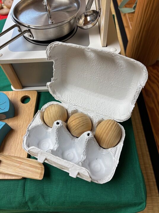 共催の「もりのおと」さんが、卵のパックを持ってきて木の卵を入れました。