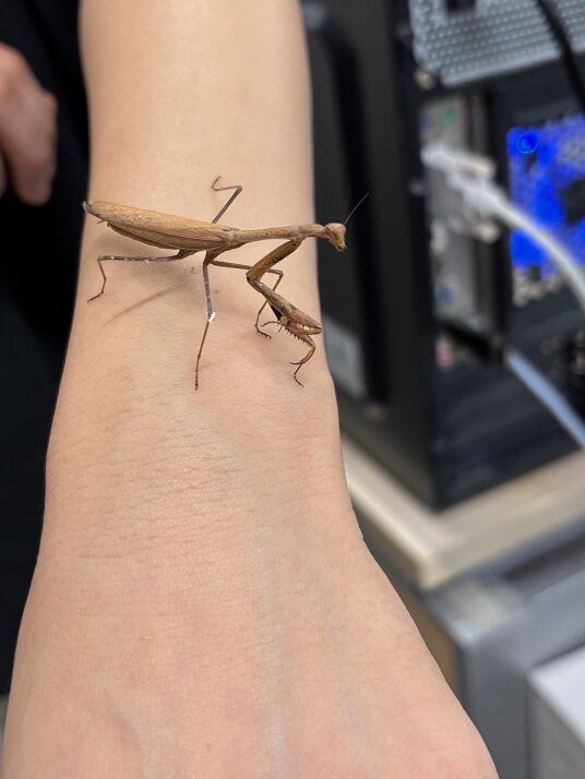 かわいいカマキリです。小さいながらも懸命にカマをフリフリ!