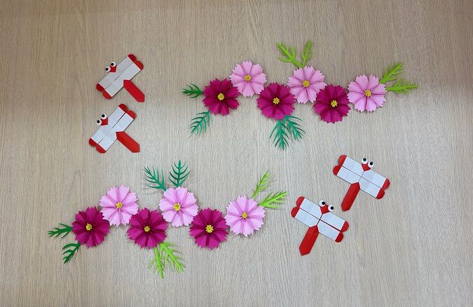 絵本・紙しばい・手あそびと楽しんだ後に、ハロウィンの飾りを作りました。
