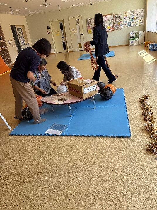 アピオあおもりでは、金魚ねぶたを片付けて秋の飾りを始めました。