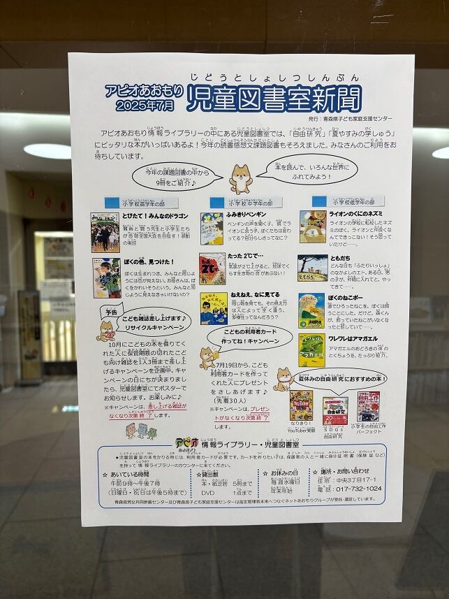 本日18日より、アピオあおもり児童図書室の展示テーマも「なつのえほん」になりました。
