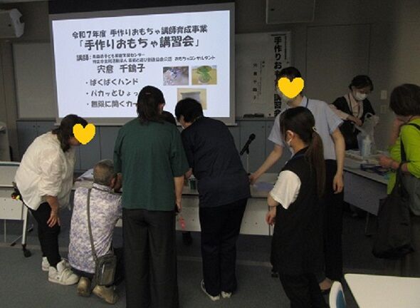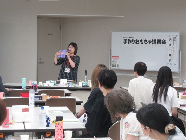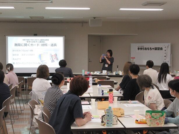 参加者は、ほとんどが児童館等で日頃からこども達と工作をされている方々。