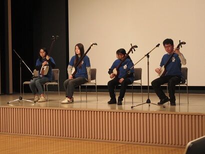 今年度の「ごじゃらっろひろば」も、青森大学三味線部「あおしゃみ」の三味線演奏で始まりました。