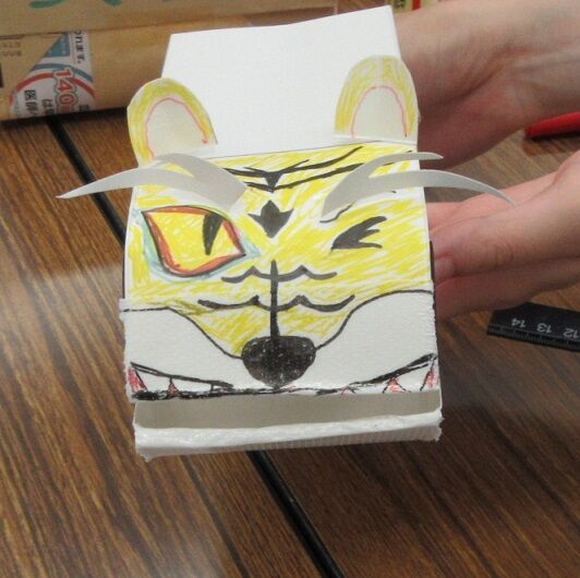 最初は、牛乳パックで作る「ぱくぱくハンド」。