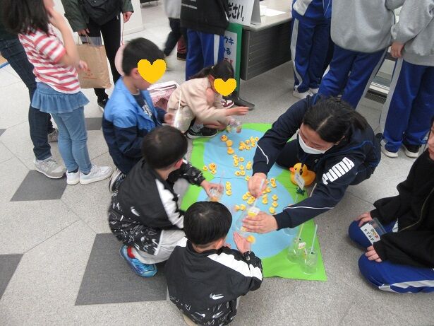 受付では他にも、大人の方がアンケートを書いている間に楽しめるゲーム「ウキウキあひるキャッチ!!」を実施。学生ボランティアの皆さまのお手伝いもあり、とても盛り上がりました。