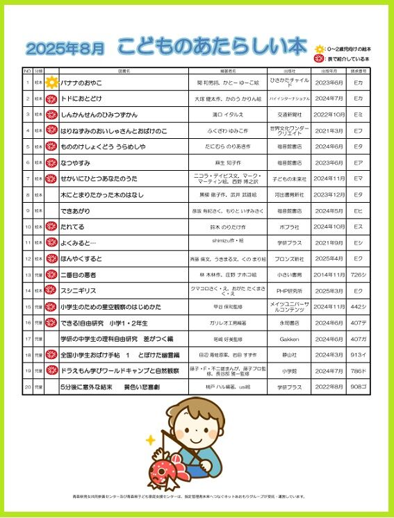 さて、アピオあおもり児童図書室の8月登場の本・DVDをお知らせします。