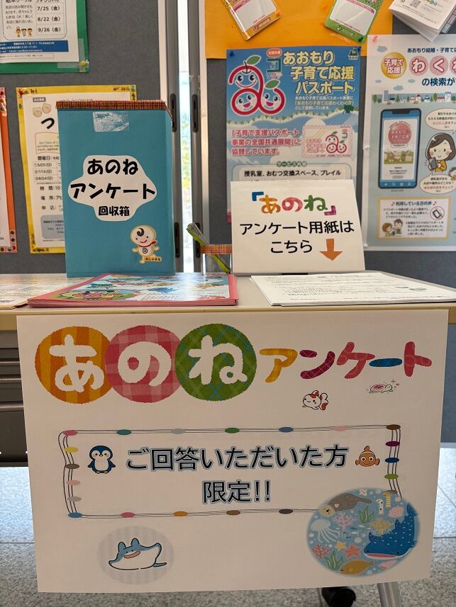 また、7月末に青森県子育て情報啓発誌「あのね」を発行し県内あちこちに発送中ですが、あわせてアンケートへのご協力をお願いしております。