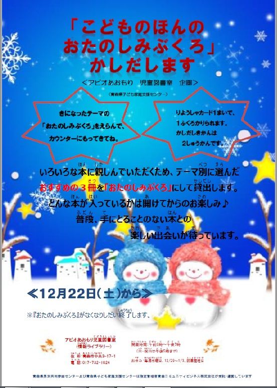12月15日、青森県子ども家庭支援センターのクリスマス会『みんなでクリスマス』が無事終了しました。