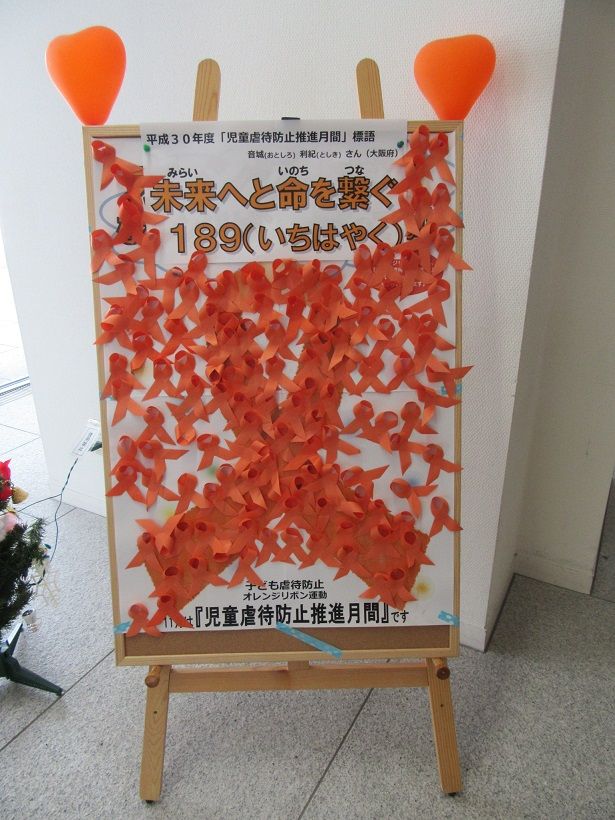 11月の「児童虐待防止推進月間」が終わりましたので、今朝、皆さまに飾っていただいた『オレンジリボン』を片付けました。