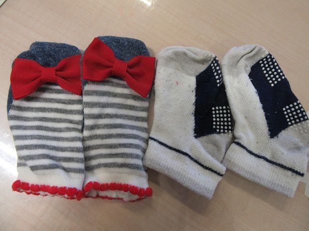 また、月がかわりましたので、プレイルームの忘れ物入れ箱から小さい靴下を2足、事務室に持ってきました。