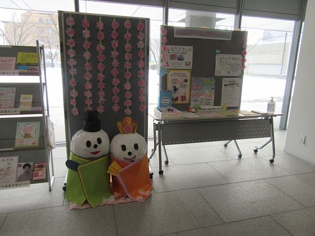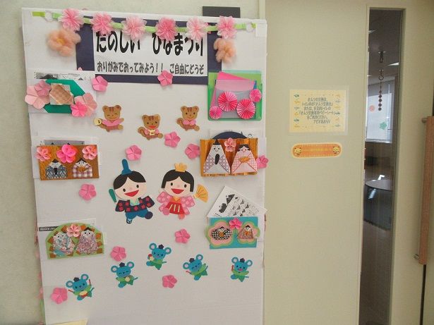 お花とおひなさまの飾りは、徐々に増やしていきますので、少々お待ちください。