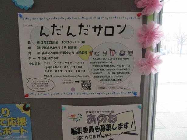 2月22日(金)は、10:30〜11:30、アピオあおもり保育室にて『んだんだサロン』を開催いたします。子どもを遊ばせながら、「んだんだ」とおしゃべりします。