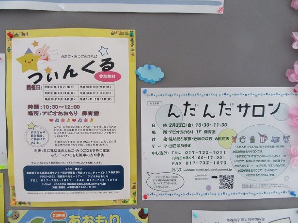 日曜日17日10:30〜12:00は、アピオあおもり保育室にてふたごみつごのひろば『つぃんくる』を開催します。
