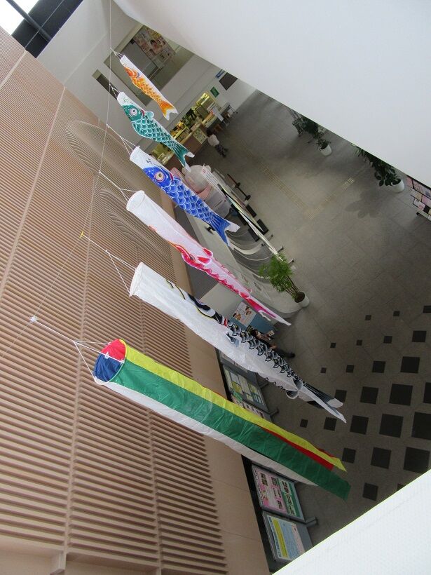 例年であればアピオあおもり館内にはこの時期、鯉のぼりとともに、子ども達に夢や希望を書いてもらったり、大人から子どもへの願いを書いてもらう「メッセージボード」や、いろいろな種類の折り紙の鯉のぼりと、折り紙・折り方をセットしたパネルを設置しておりますが。。。
