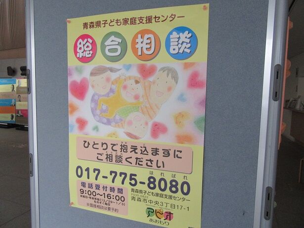 青森県子ども家庭支援センター総合相談:TEL 017-775-8080(水曜日以外の9:00〜16:00)