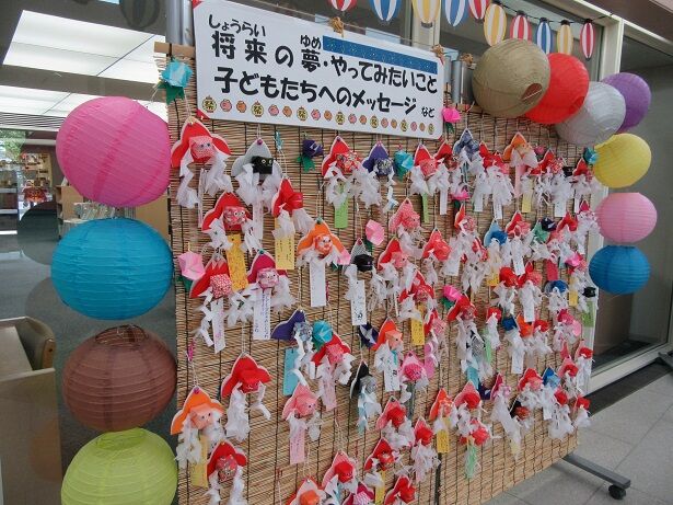 皆さまから寄せられた短冊も、折紙の金魚ねぶたに着けて飾りました。