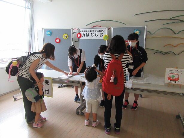 大雨の30日は、「絵本作家 とよたかずひこさんのおはなし会」を開催。