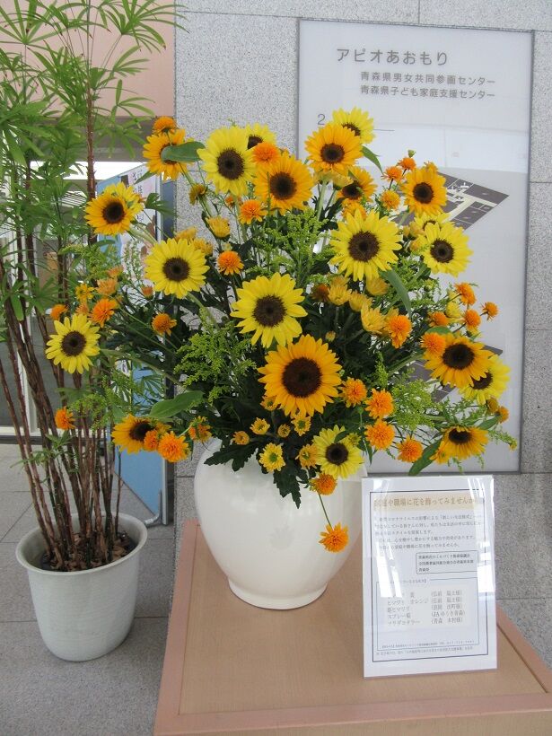 さて、暑かった29日、アピオあおもりのお花の交換日でした。