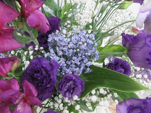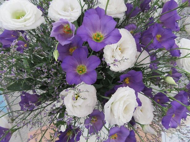 紫の花は、トルコキキョウにしては珍しい形ですよね。高価とのことでした。