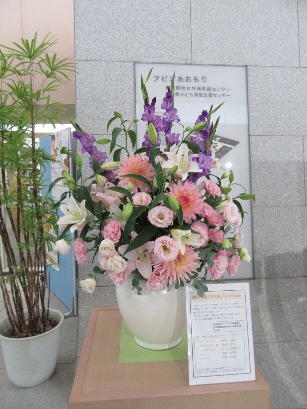 お花にはいつも、県内の生産地や生産者さんのお名前がついていますが、アレンジメントをされているのは、青森市のKANONEさんだそうです。