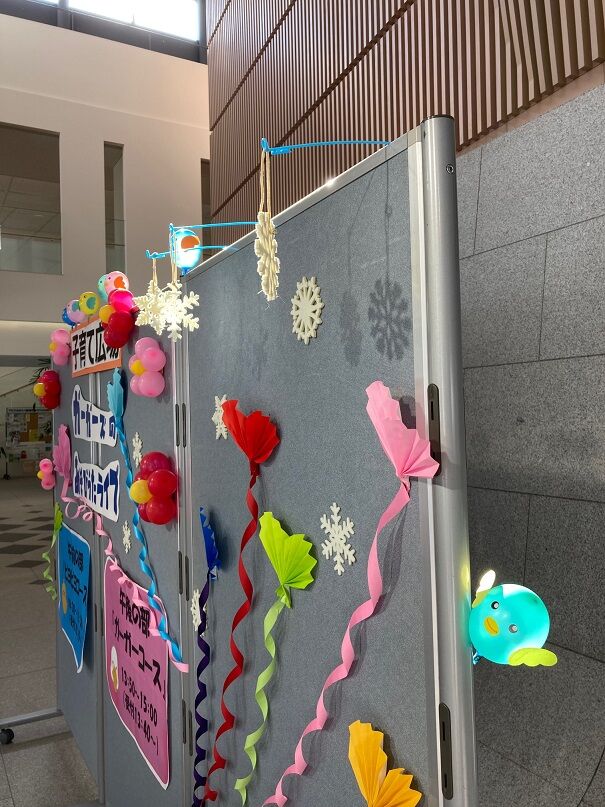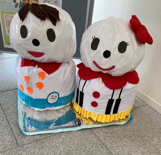 そんなに雪が多いのにアピオあおもりの中にも雪だるまを飾っており、2月11日の「子育て広場」にむけてガ―ガーズ風に変身しました。