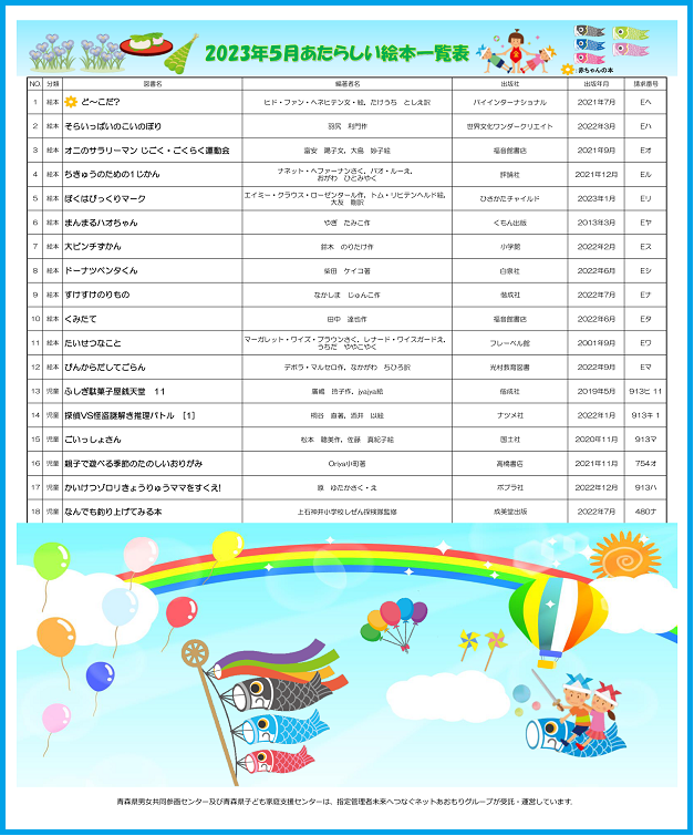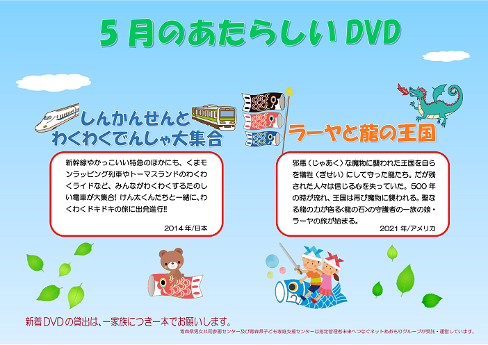 児童図書室からは5月の新しい本、DVDのお知らせが届いております。