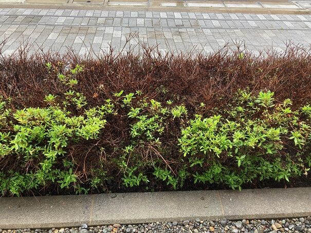 窓の下にはサツキの植え込みがあるのですが、昨年のアピオあおもり大規模改修の期間中、シートに覆われて長い間お日さまの光を浴びることができませんでした。