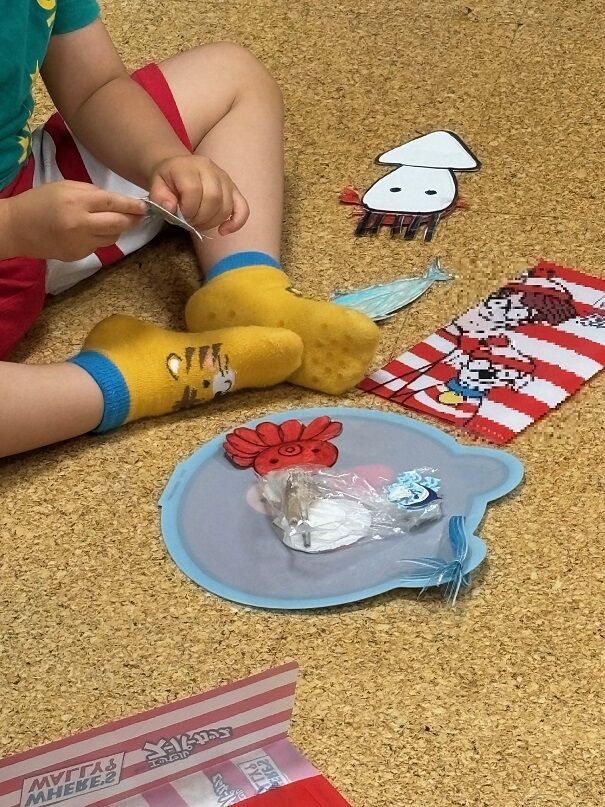 楽しいおはなしの後、海の生き物のリースを作りました。