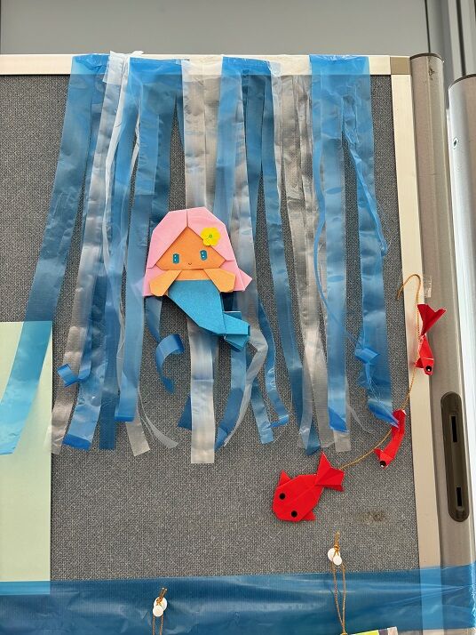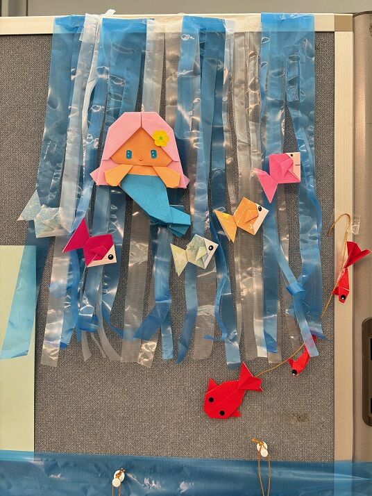 かわいい人魚ちゃんのまわりにも魚を増やしましたが、袋に入っていない折紙は差し上げておりませんので、ご了承ください。