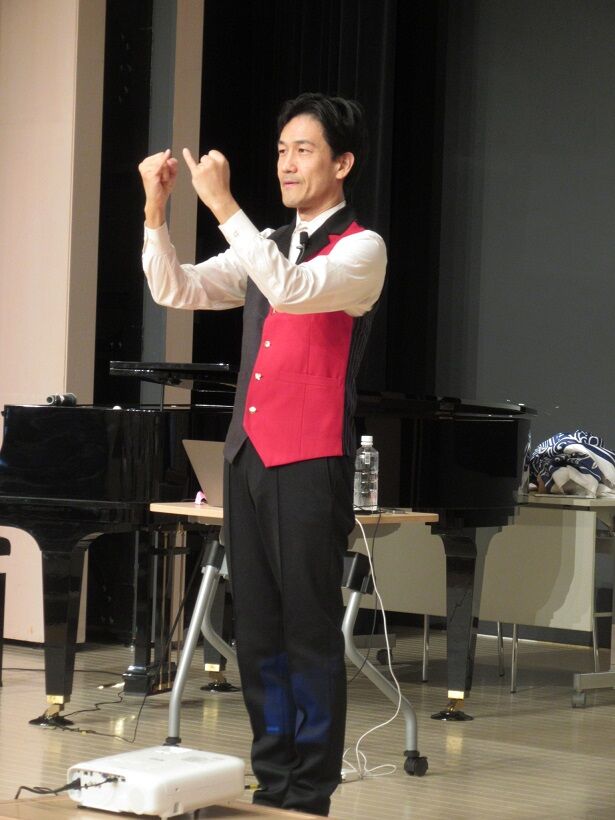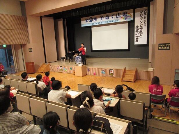 イベントホールでは、学生さんによるオープニングと「大友剛さんのマジックと音楽と絵本の世界」を開催。