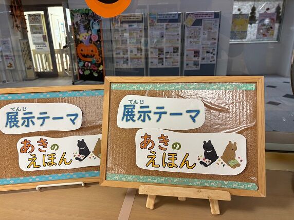 アピオあおもりの児童図書室では、9月7日から絵本の展示テーマが「あきのえほん」になりました。