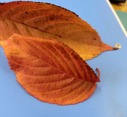 先日は、サクラの木からひらひら〜っと赤みがかった葉っぱが落ちてきて、紅葉?と思いましたが、茶色の部分もあり枯れかかっていたのかもしれません。