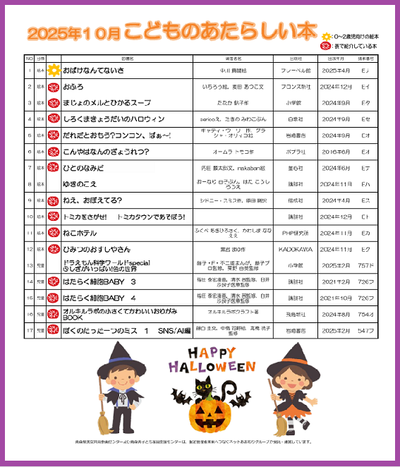 アピオあおもり児童図書室では9月末に図書整理をお願いし、絵本の展示もかわりました。