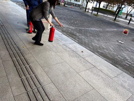 今年度はお客様の役もおり、見つけ出して誘導し避難するというシチュエーション。