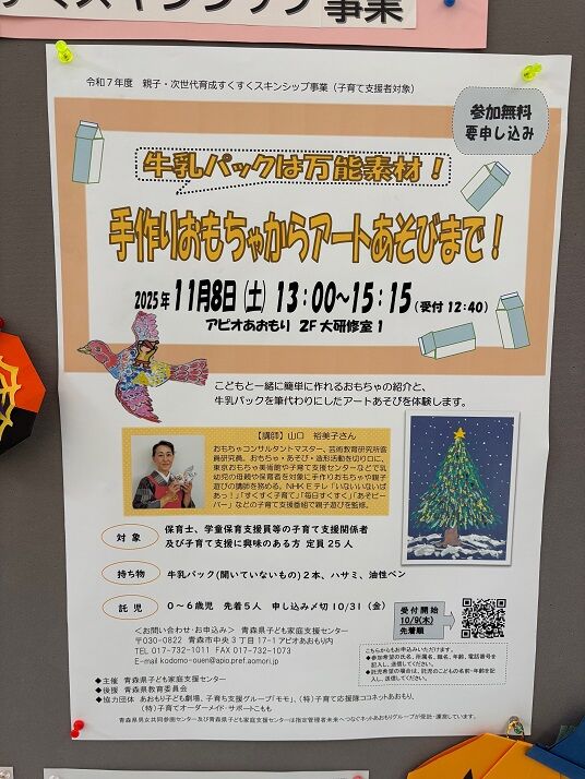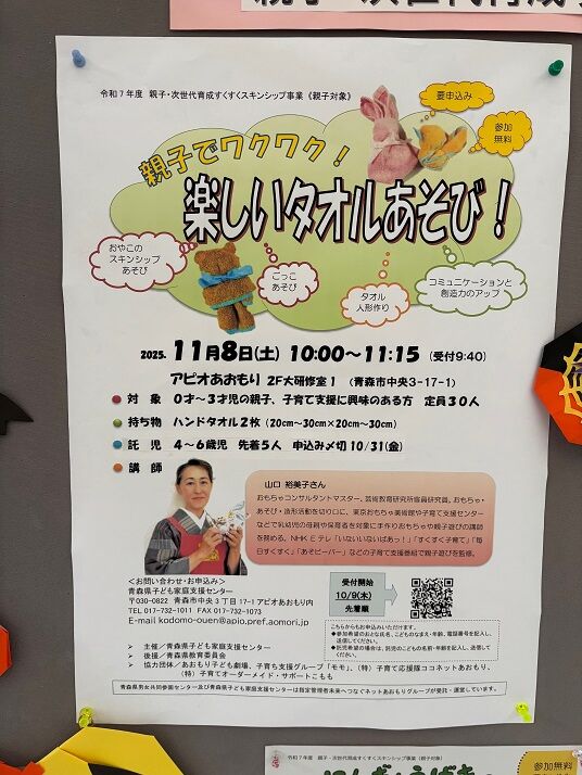 また、9日より11月8日(土)アピオあおもりで開催する親子・次世代育成すくすくスキンシップ事業の申込み受付けを開始しております。