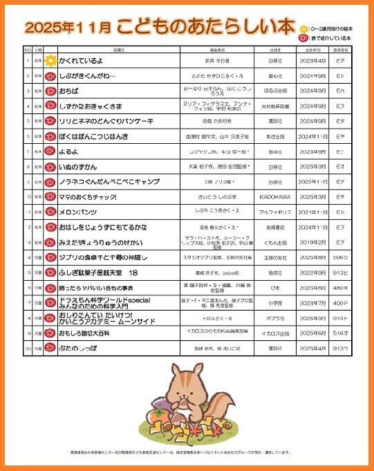 また、児童図書室から11月にお目見えした本やDVDの情報も届いております。