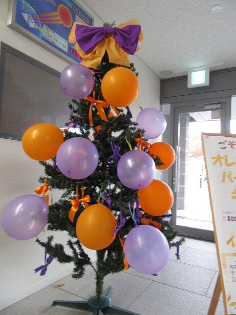 事務室受付近くには大きいオレンジリボンも飾りました。