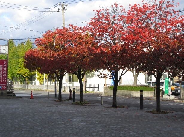 今年は秋が短く感じ、例年オレンジ色に色づくアピオあおもりのオオヤマザクラの紅葉はどうなるかな〜?と心配しておりましたが、11月に入ったとたんにきれいなオレンジ色になりました。