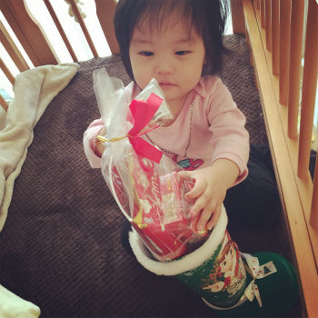 目覚めたらベビーベッドにクリスマスブーツが!!