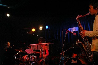 ピアノとアコースティックベースとサックスの編成。