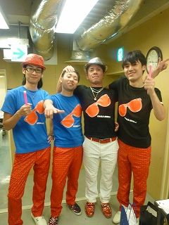 アンコールで ゴマアブラTシャツを着たメンバー4人。