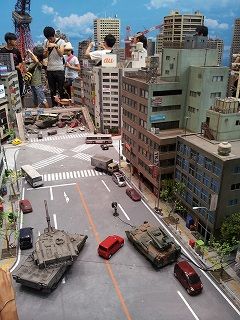 映画ゴジラの特大ポスターや その劇中のミニチュアの街など
