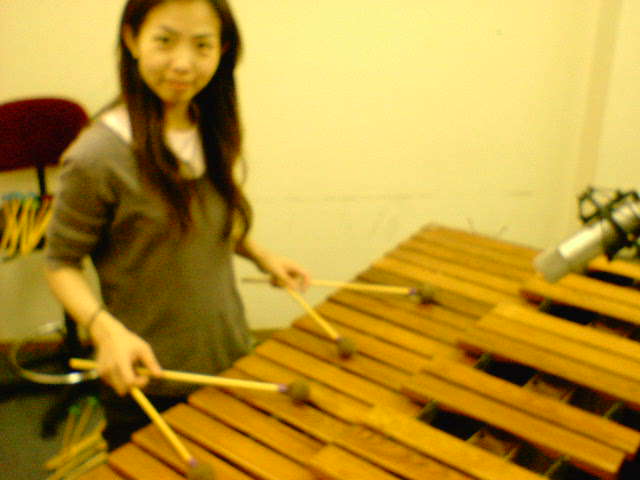 パーカッション、ベースを録り終え、その上にギター、フルートなどなど重ねていただき、マリンバとビブラフォンの録音に尾山台まで行ってきました。