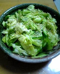 リハの帰りに焼肉屋さん風サラダが食べたくなって、24時間のスーパーでレタスときゅうりとごま油を買って帰りました。
