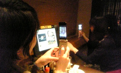 いっぱい飲んでおしゃべりして、写メ撮ろう♪ってなって、どうしたらみんなでうまく入れるか画策中のさくらちゃんと、それを撮影中のたまちゃん。
