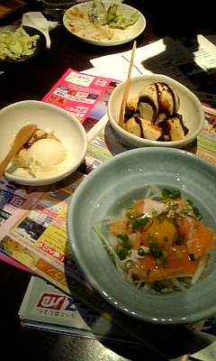最後のデザートは、アイスとアイスとサーモンユッケ