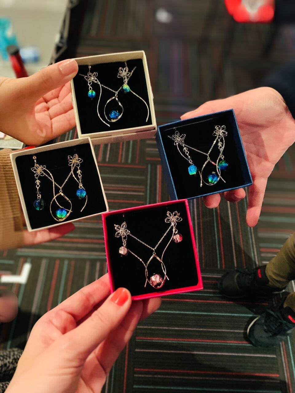 飛志津ゆかりさんが、みんなにお揃いのイヤリングとネックレスくださったのー