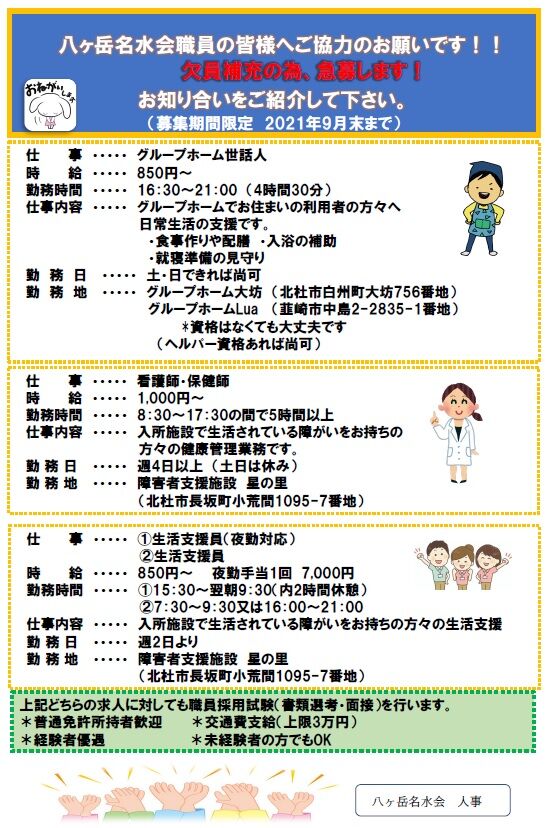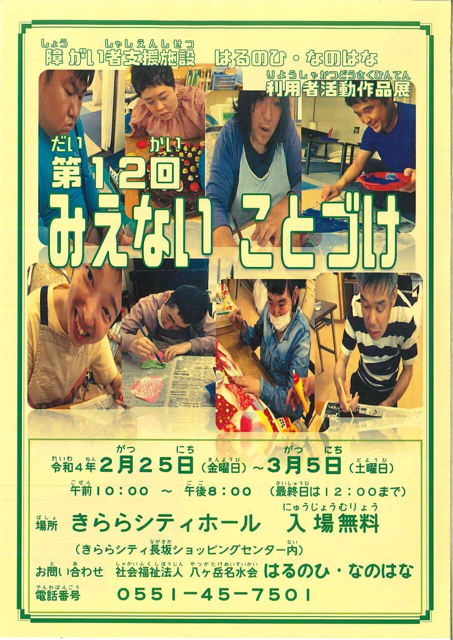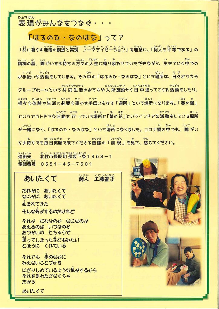 問い合わせ:はるのひ・なのはな/担当・三井 0551-45-7501